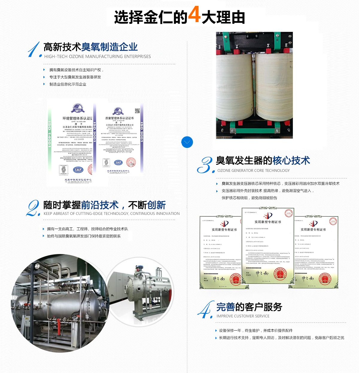 ABOUT US江蘇金仁環(huán)保節(jié)能科技有限公司主營(yíng)臭氧發(fā)生器、水冷式臭氧發(fā)生器、水冷式臭氧消毒劑等眾多產(chǎn)品。